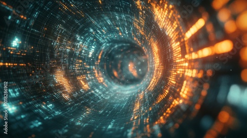 digital, abstract, tunnel, swirling, light, blue, orange, futuristic, technology, datum, network, connection, motion, glowing, bright, vibrant, dark, background, design, graphic, pattern, texture, space, galaxy, cosmic, science, fantasy, modern, concept, art, illustration, three-dimensional, render, wallpaper, screen, aesthetic, retro, neon, energy, flow, vortex, warp, speed, journey, infinite, endless, depth, perspective