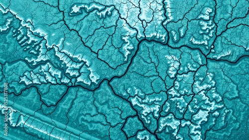 abstract, digital artwork, turquoise, teal, blue, cracked, texture, surface, pattern, map, topography, landscape, aerial view, earth, ground, crack, line, network, vein, flow, contour, relief, geography, terrain, design