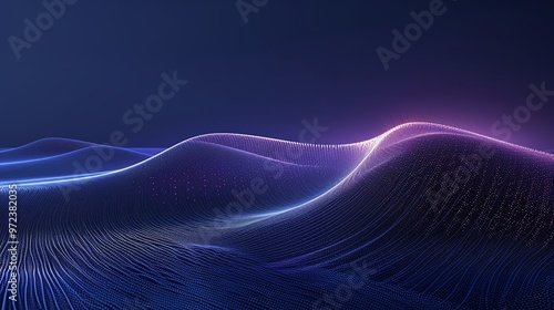 Abstract digital waves of light create a serene and futuristic atmosphere with smooth gradients and captivating colors. Product presentation background.