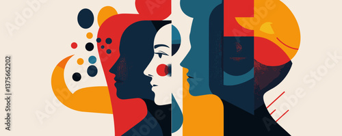 abstract, modern, colourful, art, pattern, contemporary, minimalist, design, portrait, symmetry, juxtaposition, harmony, creativity, contrast, vibrant, aesthetic, composition, surreal, overlay, dynamic, expression, conceptual, artistic, visual, balance, imaginative, bold, innovative, striking, decorative, stylish, abstracted, layered, graphic, duality, print, creative, form, flat, shape, colours, artwork