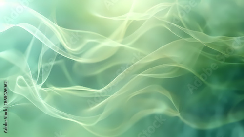 Abstract elegant green waves resembling soft flowing smoke in a serene, dreamy atmosphere.