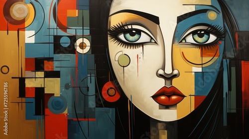 Abstract female portrait in cubism style. Abstract cubism art. Abstract female portrait. Female face