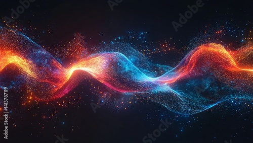 wave, energy, flow, abstract, fire, ice, blue, red, orange, particle, light, glow, sparkle, digital, technology, futuristic, motion, dynamic, swirl, curve, design, background, texture, pattern, vibrant, colourful, bright, dark, space, cosmos, cosmic, nebula, galaxy, art, illustration, graphic, visual, effect, shimmer, shine, glistering, dust, line, concept, science, fantasy, power