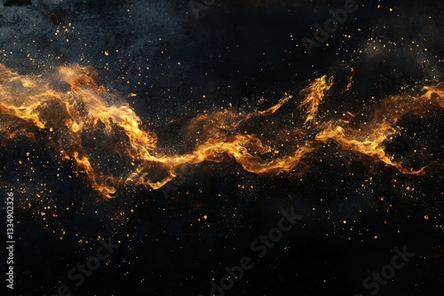 fire, flames, abstract, cosmic, space, energy, powerful, texture, gold, orange, dark, background, design, art, graphic, pattern, flowing, motion, sparkle, glistering, dynamic, artistic, visual, digital, illustration, element, black, hot, heat, power, imagination, fantasy, creative, modern
