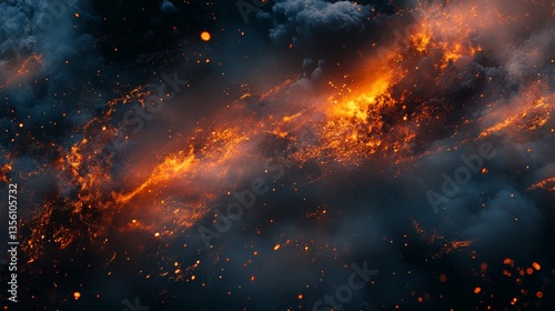 Abstract fiery texture, dark clouds and glowing embers, concept of chaos, destruction, and power