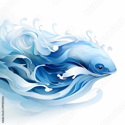 blue, aquatic, flowing, water, marin, digital artwork, sea, illustration, fluid, creative, nature, underwater, design, fish, motion, marine life, dynamic, modern art, oceanic, smooth, digital illustration, minimalist, seamless, artistic, contemporary, white background
