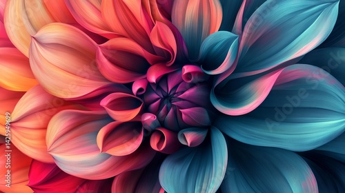 Abstract Floral Art Teal Pink Dahlia Flower Petals Detailed Macro Closeup Vibrant Colors Botanical Nature Design Background Image High Resolution Artistic Photography Soft Lines Beauty Gentle Curved