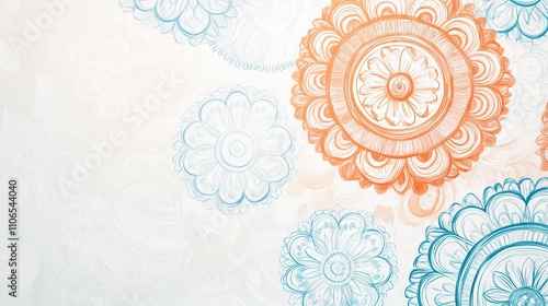 Abstract Floral Mandala Design in Pastel Blue and Orange Hues