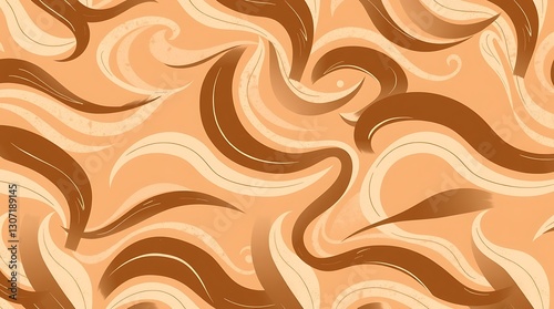 Abstract Floral Pattern: A seamless repeat pattern featuring swirling, stylized floral elements in shades of brown and beige, offering a sense of movement and organic design.