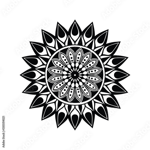 Abstract floral vector ornament mandala design features a nature-inspired pattern with flower and leaf elements