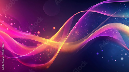 Abstract Flowing Waves: A mesmerizing digital art piece with swirling, luminous waves in vibrant hues of pink, orange, and yellow against a deep blue background.