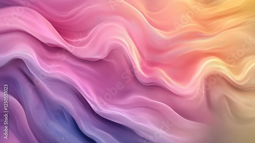 Abstract Flowing Waves of Soft Pastel Colors in a Fluid Motion with Gradients of Pink, Purple, and Yellow Creating a Dreamy and Serene Background