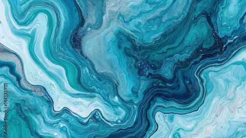 Abstract fluid art design showcasing turquoise and icy blue hues.