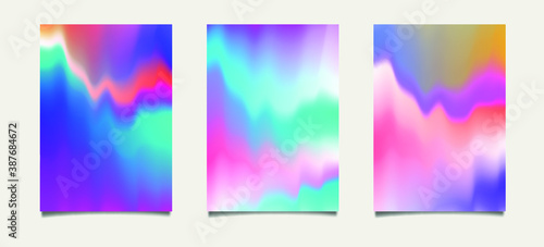 Abstract futuristic posters with holographic surface. Cover template for music or fashion event, party.