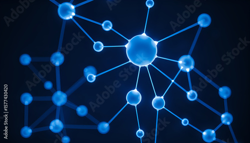 Abstract futuristic structure of interconnected glowing spheres floating in dark space, symbolizing digital networks.