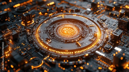 Abstract Futuristic Technology Circuit Board: Glowing Orange Lines and Dark Background. Cyberpunk Sci-Fi Digital Innovation Design