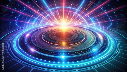 Abstract Futuristic Technology Interface with Vibrant Glowing Lights and Circular Design Elements