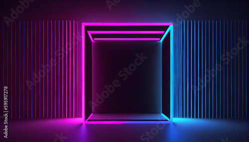 Abstract Geometric Background with Pink and Blue Neon Lines Glowing in the Dark (Generative AI)