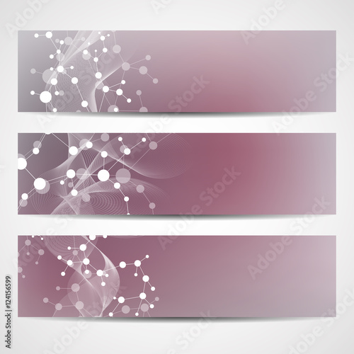 Abstract geometric banners molecule and communication. Science and technology design, structure DNA, chemistry, medical background, business and website