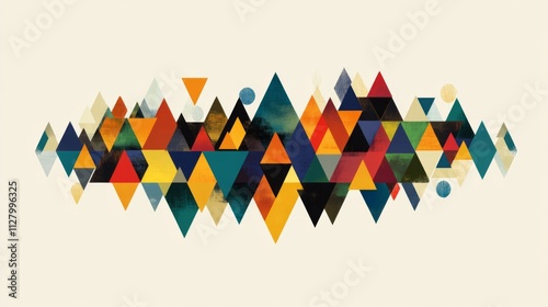 abstract, geometric, mountain, range, artwork, design, triangle, colourful, vibrant, textured, pattern, art, graphic, illustration, shape, colours, hue, shades, tone, style, modern, contemporary, minimalist, bold, bright, dark, light, beige, cream, orange, yellow, red, maroon, brown, green, teal, blue, black, white, grey, composition, background, texture, canvas, digital, painting