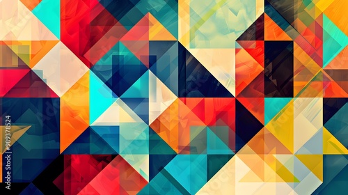 abstract, geometric, shape, pattern, colourful, background, triangle, square, design, bright, red, blue, yellow, green, vibrant, energetic, graphic, digital, art, modern, aesthetic, texture, vector, illustration, seamless, repeat, wallpaper, poster, banner, web, print, fabric, style, trendy, minimal, abstract background