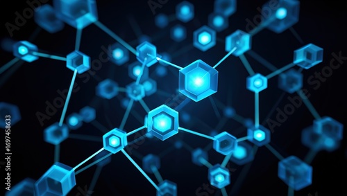 Abstract global network with glowing hexagonal molecular structure, futuristic digital connectivity concept.