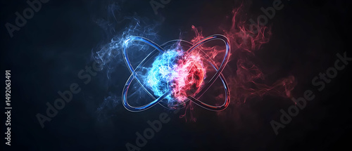 atom, science, technology, energy, glowing, light, digital, abstract, blue, red, dark, colourful, graphic, particle, design, illustration, modern, geometric, symmetric, pattern, visual, element, composition, animated, motion, effect, futuristic, sparkling, vibrant