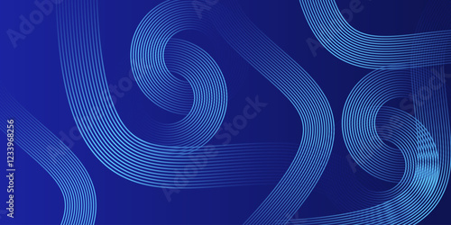 Abstract glowing circle lines on dark blue background. Geometric stripe line art design.