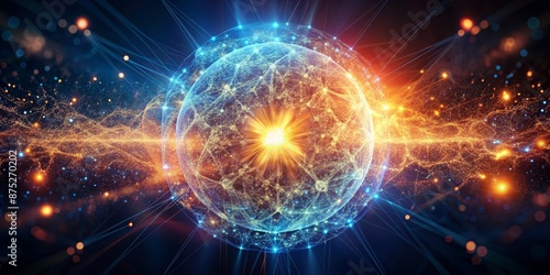 Abstract Glowing Sphere with Network Connections in Space - Digital Art