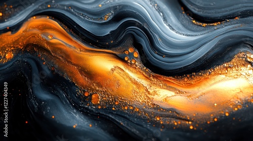 abstract, liquid, art, gold, black, texture, swirling, colours, design, background, wave, pattern, fluid, marble, paint, acrylic, metallic, luxury, elegant, modern, dark, gold, shine, glossy, shimmer, sparkle, glamour, rich, flowing, vibrant, dynamic, smooth, viscous, surface, iridescent, contemporary, artwork, painting, artistic