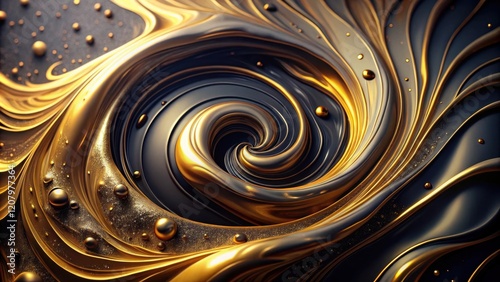 gold, black, swirl, vortex, abstract, liquid, metallic, shiny, elegant, luxurious, texture, background, design, art, pattern, graphic, illustration, glossy, sphere, particle, glistering, dark
