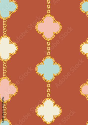 Abstract Golden Chains Floral Geometrics Seamless Pattern Trendy Chic Colors Elegant Decorated Concept