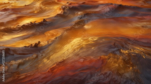 Abstract Golden Hues of a Fluid Landscape Swirling, textured, and richly colored organic forms create a mesmerizing visual experience