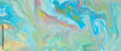 Abstract gradient multicolored background. Colorful spots on water surface. Fluid Art