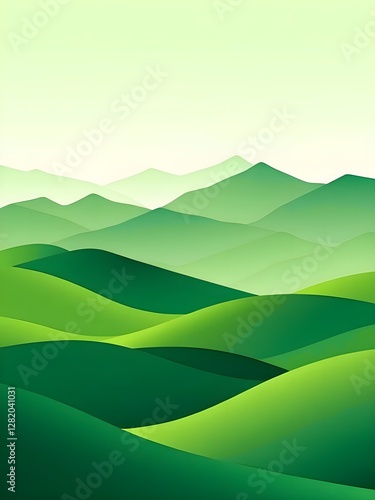 Abstract green landscape wallpaper background illustration design with hills and mountains