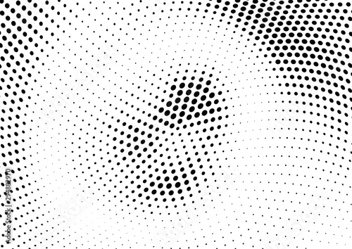Abstract halftone wave dotted background. Halftone twisted grunge pattern, dot, circle. Vector modern optical halftone pop art texture for poster, business card, cover, label mock-up, sticker layout