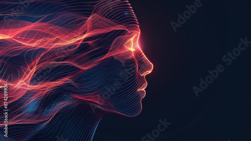 futuristic, art, human, profile, glow, neural, network, pattern, symbolize, a, cleverness, science, insight, fantasy, proposal, intuition, theory, brainchild, abstract, approach, solution, vision, paradigm, design, conceive, technology, background, reason, visual, perception, modern, suggestion, brain wave, notion, innovation, silhouette, mental, creative, culture
