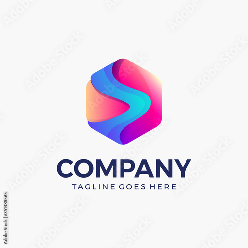 abstract hexagonal shape vivid color, bright colorful logo and icon design template for business. Vector illustration
