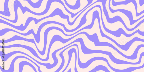 Abstract horizontal monochrome background with dynamic waves. Trendy vector illustration in style retro 60s, 70s. Beige and purple colors