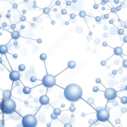 Abstract illustration of a molecular structure with interconnected blue spheres and lines against a white background