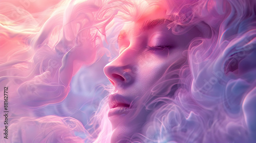 colourful, face, dreamy, graphic, woman, art, delicate, hallucinogen, design, purple, glow, mystic, gradient, soft, smoke, aesthetic, texture, feminine, light, pink, whimsical, digital, beauty, abstract, background, photo, photo, digital artwork, artistic, magical, spirituality, aethereal, artwork, pastel, surrealism, enchanting, fantasy, illustration, surreal, painting