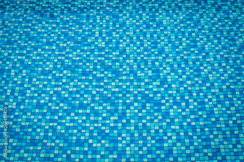 Abstract image of bird eye view blue water with ceramic tile mosaic in swimming pool.