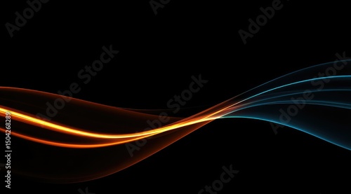 Abstract image of flowing, luminous orange and teal lines on a black background, creating a wave-like, dynamic composition