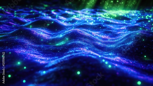abstract, wave, blue, sea, ocean, light, glow, glistering, surface, pattern, texture, smooth, fluid, dynamic, artistic, aethereal, vibrant, sparkling, energy, bright, dark, depth, space, cosmic, digital, effect, particle, illuminated, luminescent, animation, design, modern, futuristic, wavy, motion, ripple, shimmer, bokeh, render, dreamy, scenic, elegant, subtile, violet, cyan, green, background