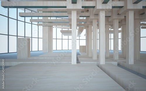 Abstract interior of wood, glass and concrete. 3D illustration. rendering