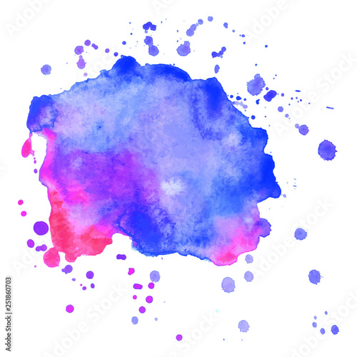 Abstract isolated watercolor spot with droplets, smudges, stains, splashes.