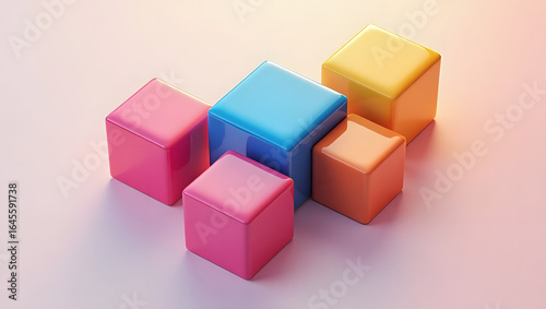Abstract isometric cubes, colorful and glossy, dynamic lighting.