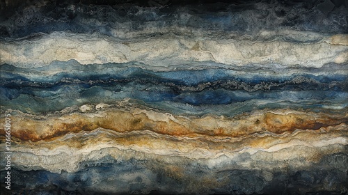 abstract, art, texture, layer, blue, brown, white, paint, artwork, contemporary, modern, design, background, wallpaper, canvas, illustration, graphic, image, pattern, visual, artistic, creative, style, elegant, sophisticated, serene, calm, peaceful, tranquil, moody, atmospheric, depth, dimension, landscape, horizon, ocean, earth, nature, organic, earthy, textured, vibrant