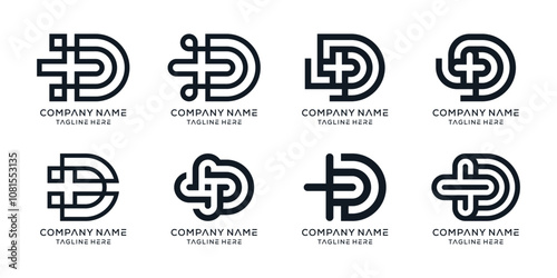 abstract letter D plus logo design icon set.