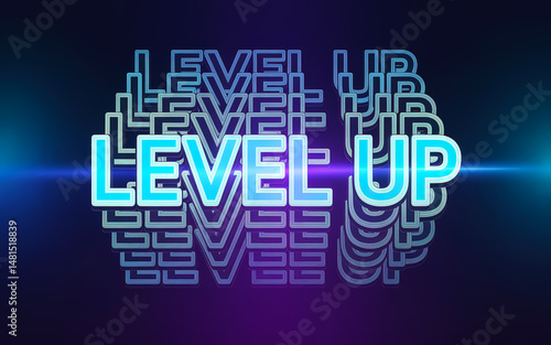 Abstract 'Level Up' text on dark background.